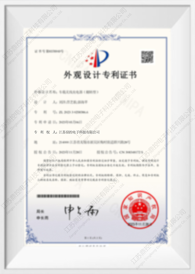 Patentový certifikát úžitkového vzoru pre bezdrôtovú nabíjaciu skrinku do auta - Dingkong